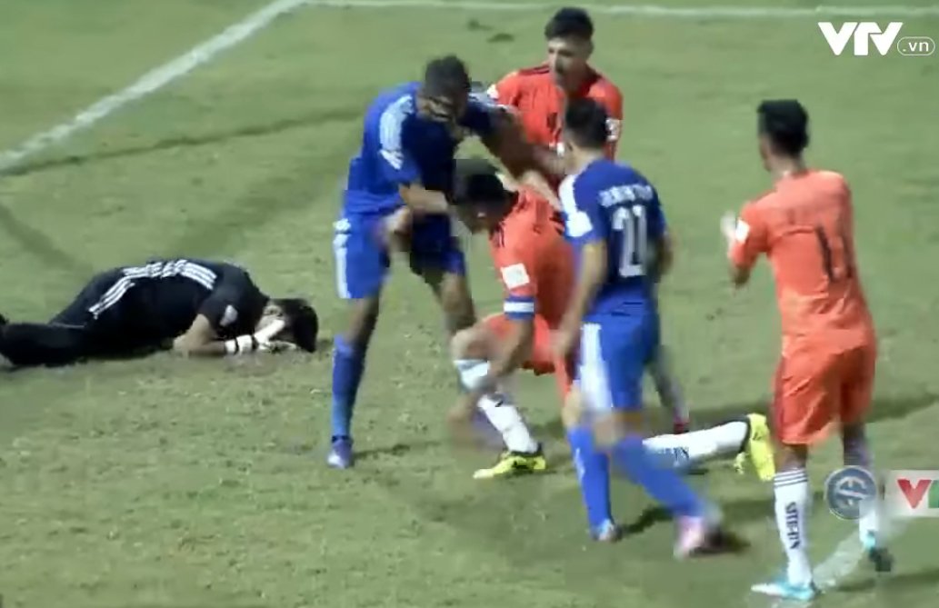 Mọi thứ chưa dừng lại ở đó. Phút 73, trong một tình huống bóng bổng, Merlo va chạm với thủ thành Văn Cường củ Quảng Nam. Khi ngã ra sân, tiền đạo gốc Argentina đã vung tay đánh vào mặt thủ môn của Quảng Nam. Sau đó Thiago lao vào phản can thiệp thì Đỗ Merlo tiếp tục đứng dậy đẩy ngã trung vệ của Quảng Nam.