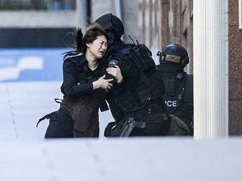 | Một nhân viên quán cà phê Lindt chạy về phía cảnh sát |