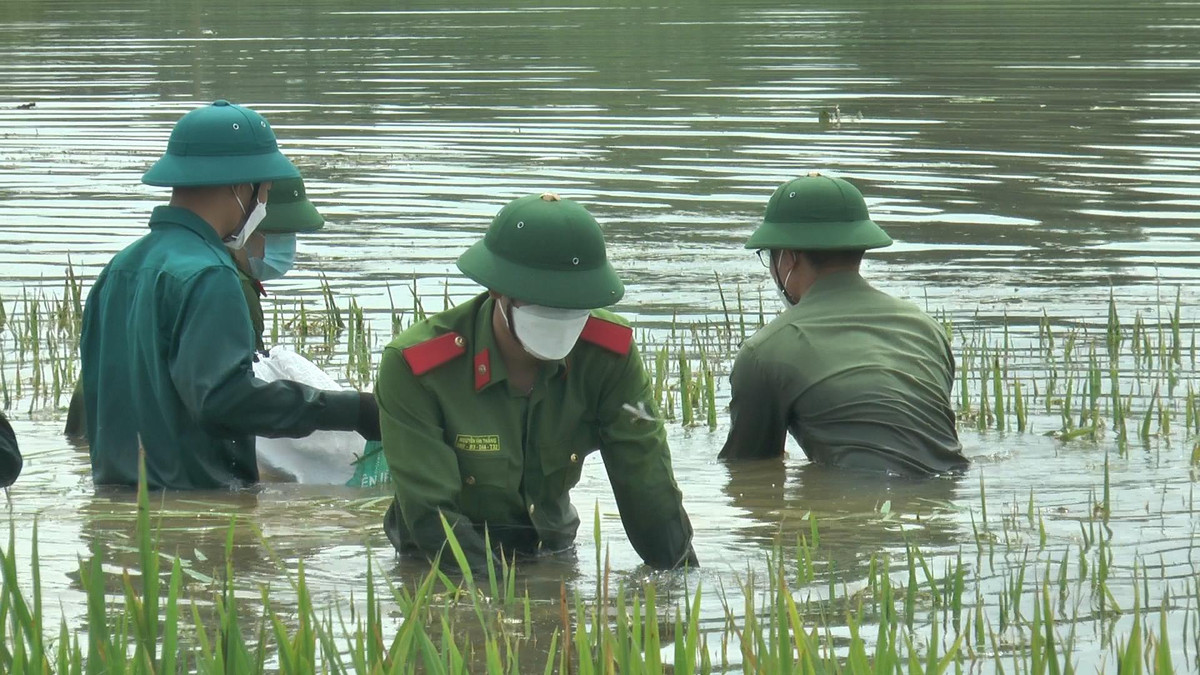 Video: Công an ngâm mình gặt lúa bị ngập úng giúp dân