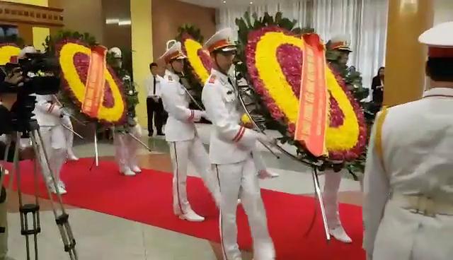 Tại Trung tâm Hội nghị Quốc tế (11 Lê Hồng Phong, Ba Đình, Hà Nội), lúc 6h30, các đơn vị làm nhiệm vụ đã có mặt tại ICC làm công tác chuẩn bị. Đội tiêu binh, quân nhạc có mặt tại ICC lúc 7h. Trước đó, lực lượng an ninh được triển khai kiểm tra, rà soát quanh khu vực ICC, đảm bảo an ninh, an toàn cho lễ viếng