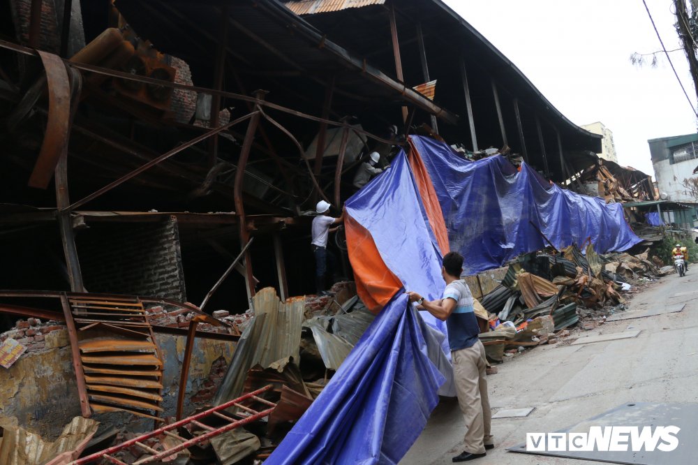 04/09/2019 21:43:00 +07:00Chiều 4/9, Công ty Rạng Đông cho căng bạt che chắn, phủ kín hiện trường nhằm hạn chế việc gây ô nhiễm môi trường xung quanh sau cháy.