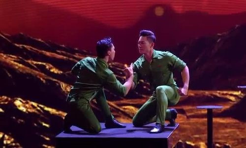 Khi 5 chiếc cột ở phía trước và phía sau bất ngờ bị đổ, Quốc Cơ - Quốc Nghiệp quyết định nhảy thẳng tới bục an toàn trong đêm chung kết "Britain's Got Talent 2018".