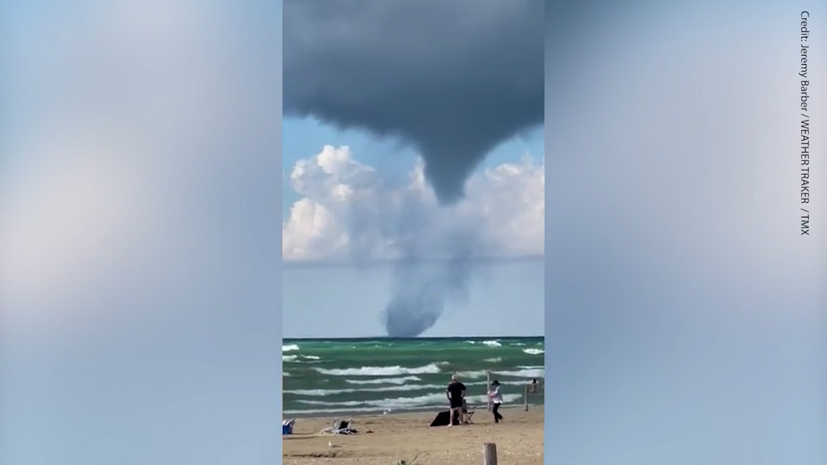 Cột nước xoắn khổng lồ xuất hiện trên mặt hồ Huron gần Ontario, Canada, cột nước hình thành khi không khí lạnh di chuyển qua các khối nước ấm hơn.