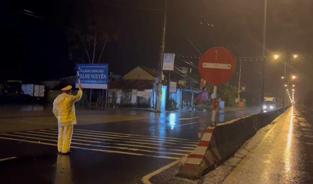 Tối 27/9, lực lượng CSGT cắm chốt tại Quốc lộ 1A qua địa phận tỉnh Quảng Nam, yêu cầu các phương tiện dừng xe tránh bão Noru.