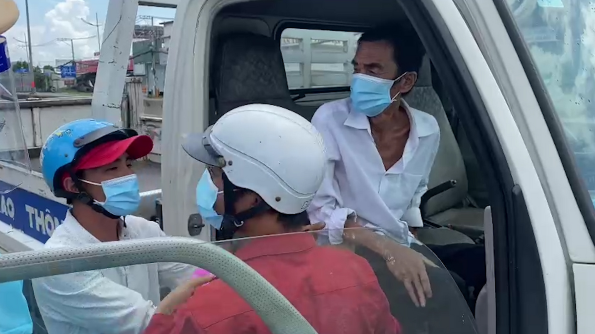 Trưa 10/8 ông Nguyễn Văn Giới (Long An) bị nhồi máu cơ tim, rất may ông được đội CSGT Tân Túc dùng xe đặc chủng đưa đến bệnh viện Chợ Rẫy cấp cứu.