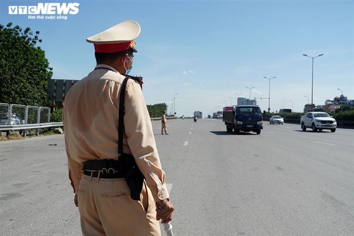 Lực lượng CSGT có mặt trên các tuyến đường để làm nhiệm vụ chống dịch COVID-19, dưới nền nhiệt hơn 40 độ C.