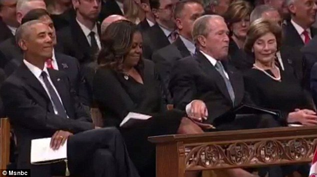 Trong tang lễ của Thượng nghị sỹ Mỹ John McCain được tổ chức tại nhà thờ Washington National, các máy quay đã bắt được khoảnh khắc đặc biệt khi từ hàng ghế trước, ông Bush được nhìn thấy lấy một viên kẹo từ phu nhân Laura Bush rồi “bí mật” đặt vào tay phu nhân cựu Tổng thống Obama, người ngồi ở cạnh ông.