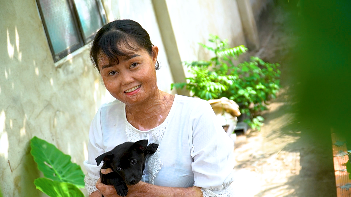Năm 2019, chị Lê Thị Kim Ngân, quê Phú Yên bị chồng tẩm xăng đốt, thoát chết nhưng với hình dạng bỏng nặng, thương tật 88%, chị vẫn vươn lên để chăm sóc hai con.