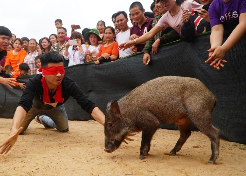Video: Cười vỡ bụng với cuộc thi bịt mắt bắt lợn rừng ở Bắc Giang