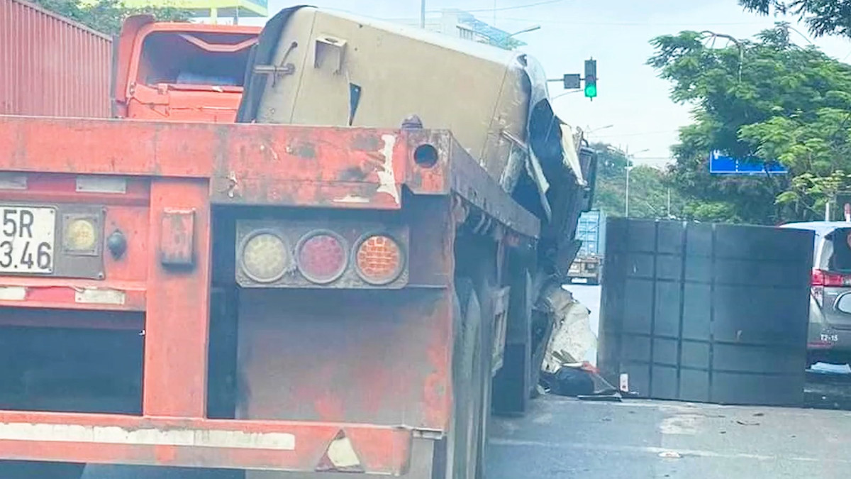 Sáng 2/8, xe đầu kéo chạy trên quốc lộ 5, đoạn thuộc TP. Hải Phòng, trong lúc giảm tốc độ đột ngột để dừng đèn đỏ thì cuộn sắt phía trên rơi xuống đường.