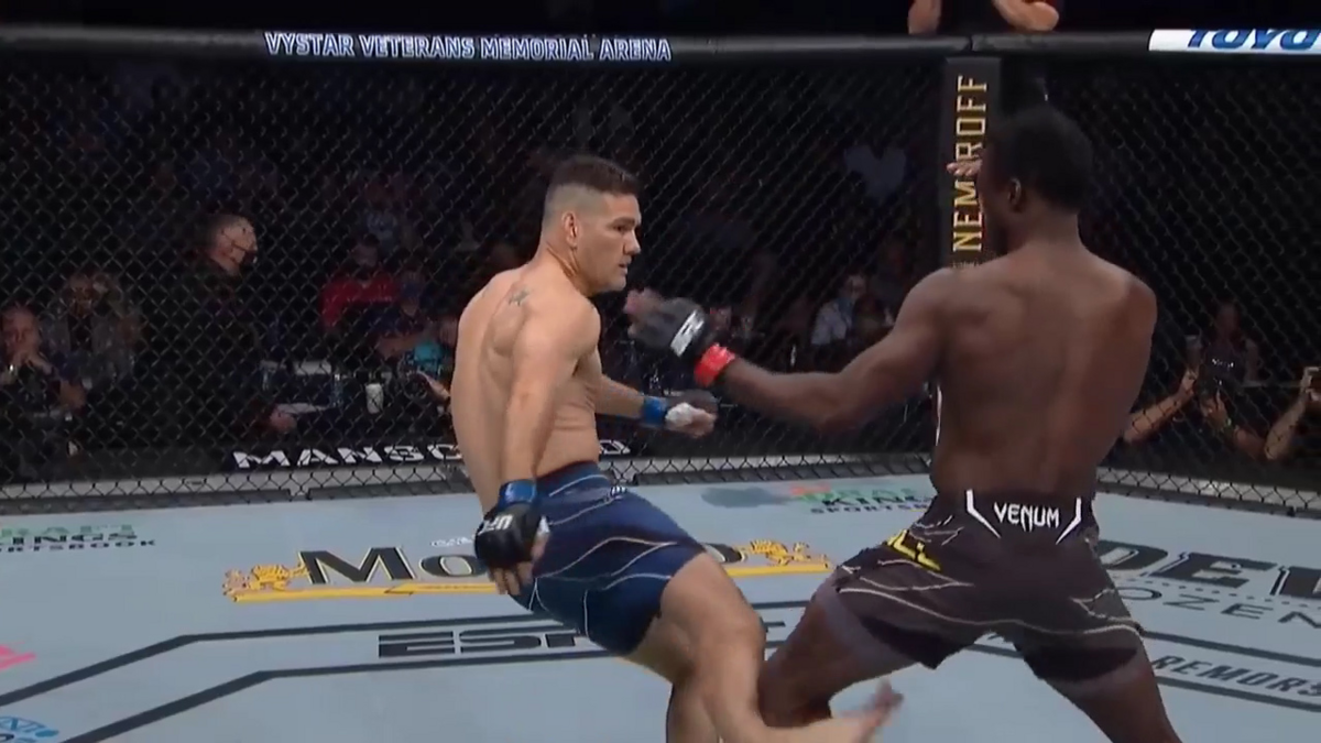 Võ sĩ Chris Weidman người Mỹ bị gãy chân sau khi đá mạnh vào đối thủ Uriah Hall tại UFC 261.