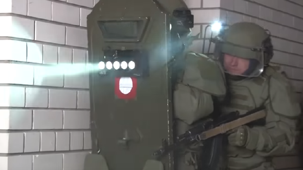 Các lực lượng đặc biệt của Nga đang sử dụng sử dụng một loại khiên bọc thép với hệ thống áp chế ánh sáng tối tân.