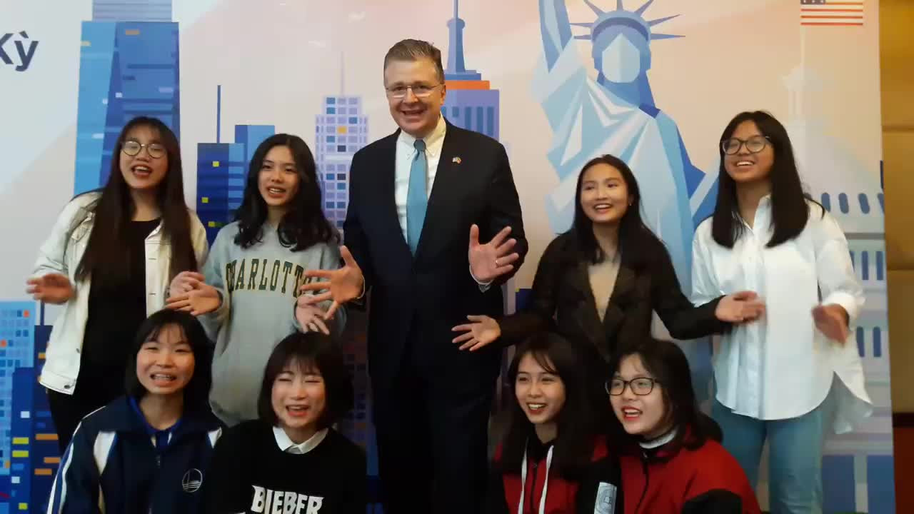 Tôi tin rằng mỗi bạn đều có những khả năng vô hạn để tiến xa như bạn hằng mong muốn. Chúc mừng ngày Quốc tế Phụ nữ!" - Đại sứ Daniel Kritenbrink chia sẻ lời chúc mừng nhân ngày Quốc tế phụ nữ 8/3, khi ông khai mạc triển lãm giáo dục Hoa Kỳ 2019.