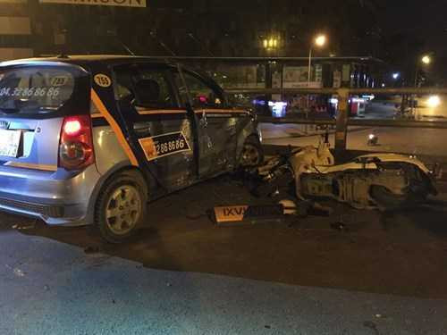 (VTC News) - 22h45 ngày 8/11, sau khi đâm vào ít nhất 7 xe máy trên cầu vượt Chùa Bộc - Thái Hà làm một người chết, nhiều người nguy kịch, tài xế taxi đã nhảy từ thành cầu xuống đường và bất tỉnh.