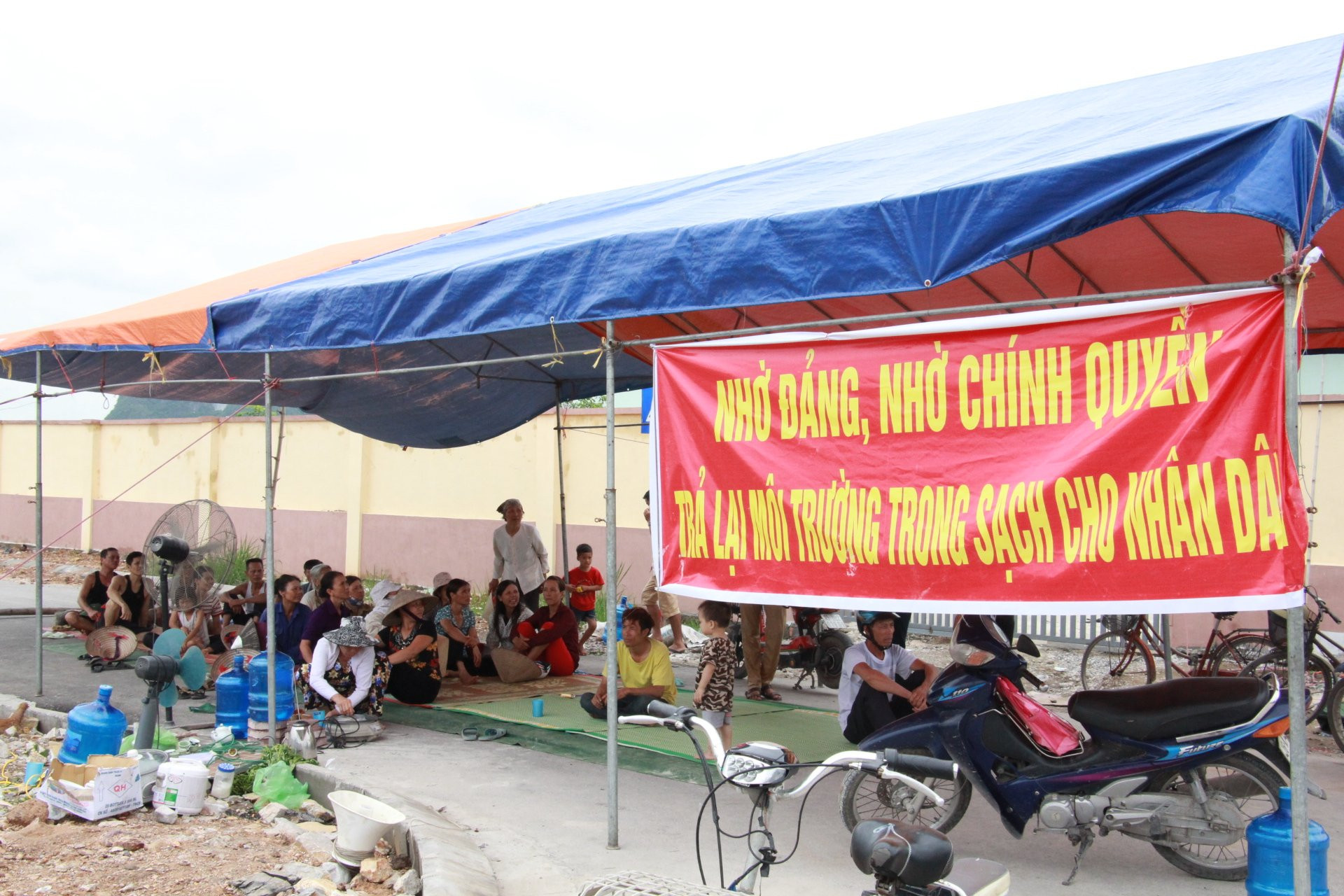 Bức xúc trước việc bãi rác khổng lồ gây ô nhiễm môi trường nghiêm trọng, ảnh hưởng đến đời sống và sản xuất, hàng chục hộ dân đã lập "chiến lũy" chặn các xe chở rác vào bãi tập kết.