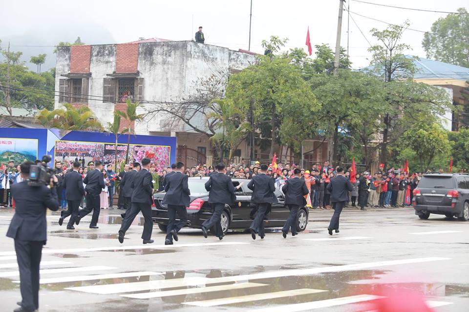 26/02/2019 08:57:00 +07:0012 cận vệ chạy bộ quanh chiếc Mercedes của nhà lãnh đạo Triều Tiên Kim Jong-un lúc xe bắt đầu lăn bánh di chuyển từ ga Đồng Đăng (Lạng Sơn) về Hà Nội.