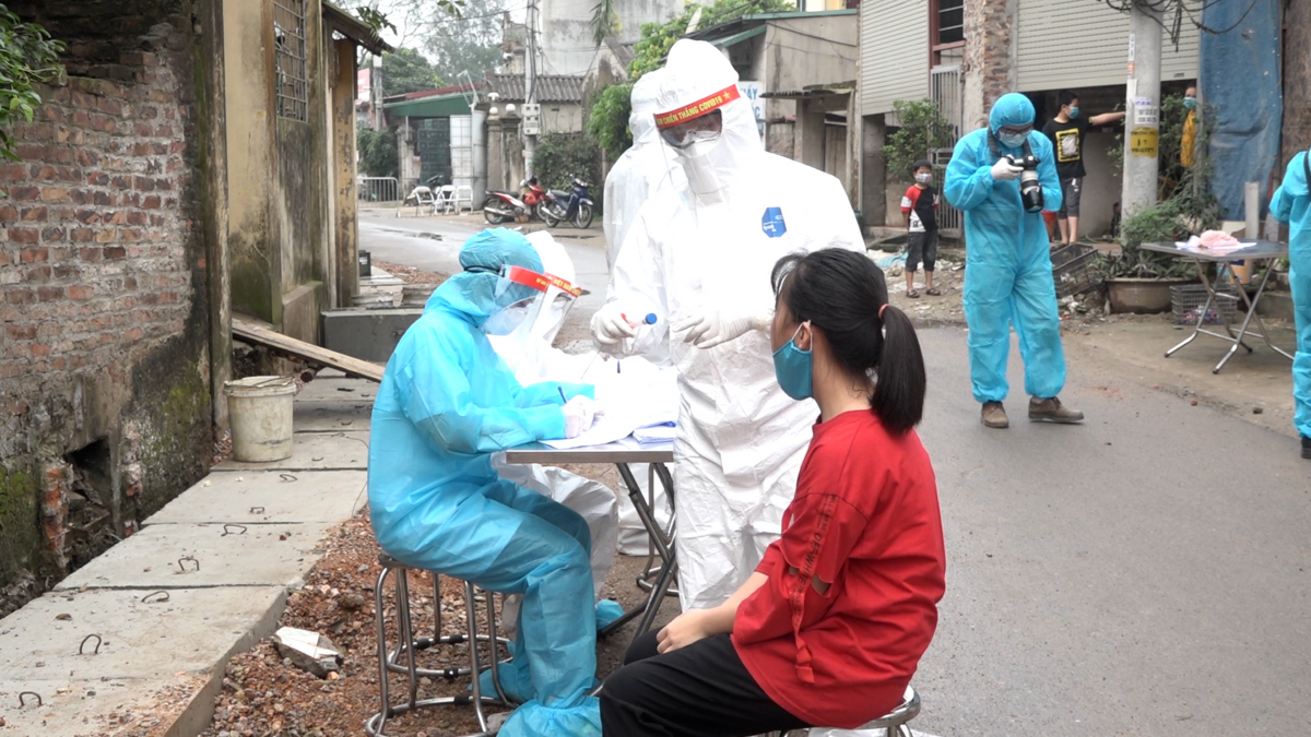 Sáng 18/4, cơ quan chức năng Hà Nội lập 7 điểm ở xã Dũng Tiến, huyện Thường Tín lấy mẫu xét nghiệm các hộ dân sống quanh nơi bệnh nhân 266 cư trú.