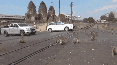 Hàng nghìn con khỉ hoang tràn xuống đường hoành hành tại một thị trấn ở Thái Lan, nhiều con trèo lên người du khách, trộm kính, chạy ngang qua ô tô.