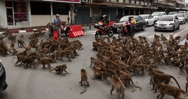 Hàng trăm con khỉ ở Lopburi bất ngờ tràn xuống đường rồi lao vào "hỗn chiến" khiến nhiều người dân sợ hãi bỏ chạy.
