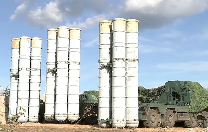 Rồng lửa S-400 xuất hiện tại địa điểm tập trận. (Ảnh: Tass)
