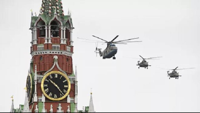 Trong thành phần phi đội bay qua Quảng trường Đỏ có các loại chiến đấu cơ vượt âm đa năng hiện đại như Su-30M, cường kích đa năng Su-34, tiêm kích đánh chặn MiG-31.