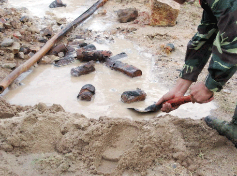 (VTC News)- Sau 3 quả đạn phát nổ, công binh còn phát hiện thêm 11 quả đạn nằm lăn lóc trong đống bùn đất, chờ "khai hoả".
