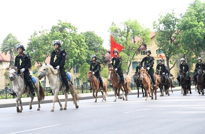 Sáng 8/6, trước sự chứng kiến của các đại biểu Quốc hội, đoàn Cảnh sát cơ động Kỵ binh làm lễ ra mắt và diễu hành trên đường Độc Lập và khu vực trước Lăng Bác.