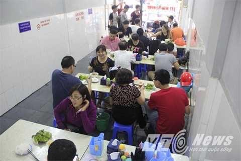 | Rất đông người đã đến quán bún chả Hương Liên trong sáng nay. |