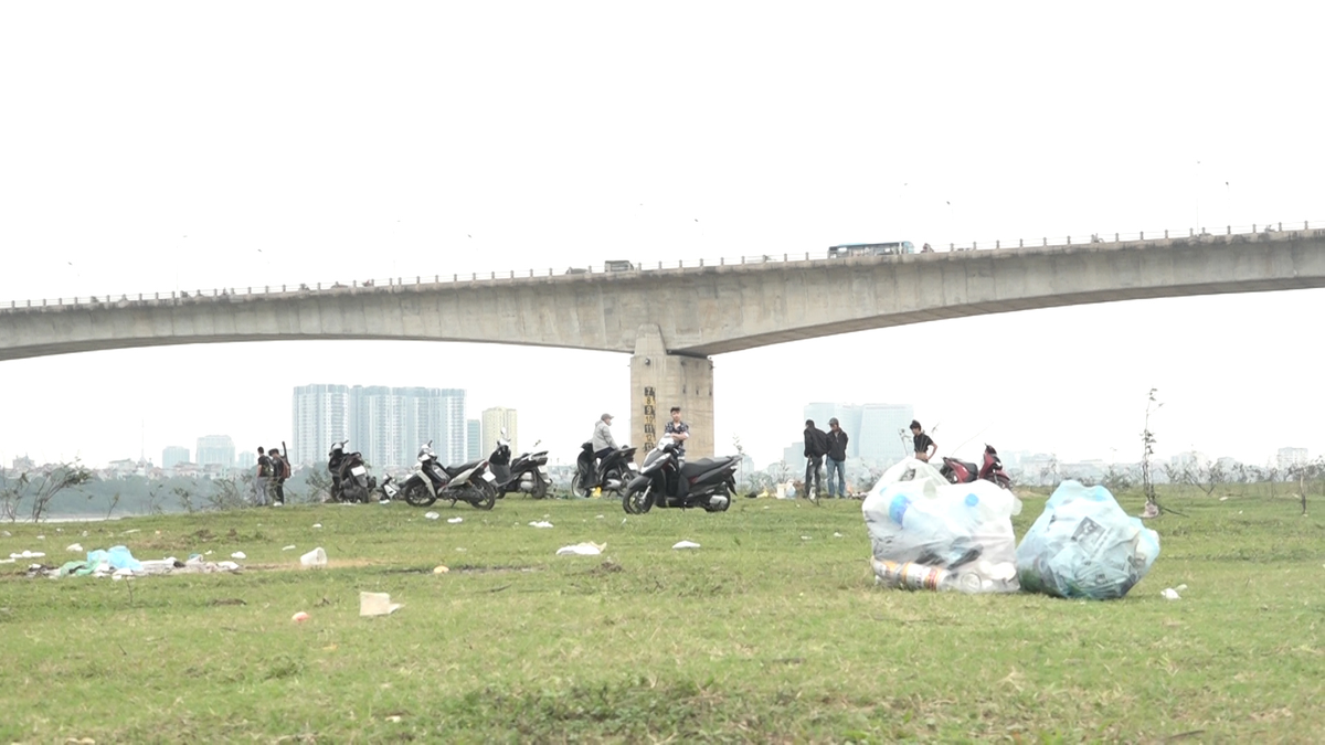 Nhiều nhóm tổ chức dã ngoại tại chân cầu Vĩnh Tuy (Long Biên, Hà Nội) xả rác bừa bãi gây mất mỹ quan, ảnh hưởng đến môi trường.