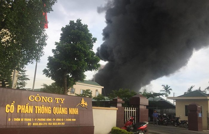 Khoảng 16h ngày 21/6, tại công ty cổ phần Thông Quảng Ninh (phường Phương Đông, TP Uông Bí, Quảng Ninh) xuất hiện đám cháy tại dây chuyền 4 (khu nhà xưởng chế biến nhựa).