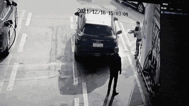 Chiếc Porsche đang đổ xăng tại Thâm Quyến, Trung Quốc, một người đàn ông lao đến rút vòi xăng ra và châm lửa đốt xe.