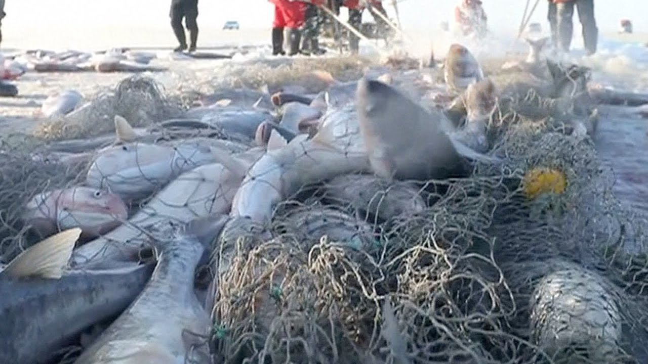 Video: Đào hố, giăng lưới trên hồ băng, bắt 650 tấn cá trong nửa ngày