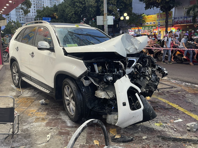 Đạp nhầm chân ga, nữ tài xế điều khiển xe hơi màu trắng tông trúng 2 xe máy đi cùng chiều rồi lao lên vỉa hè tại ngã tư Giếng Nước, Bà Rịa - Vũng Tàu.