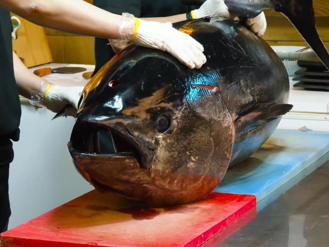 Video: Đầu bếp Hàn Quốc xẻ thịt cá ngừ 110 kg làm sashimi