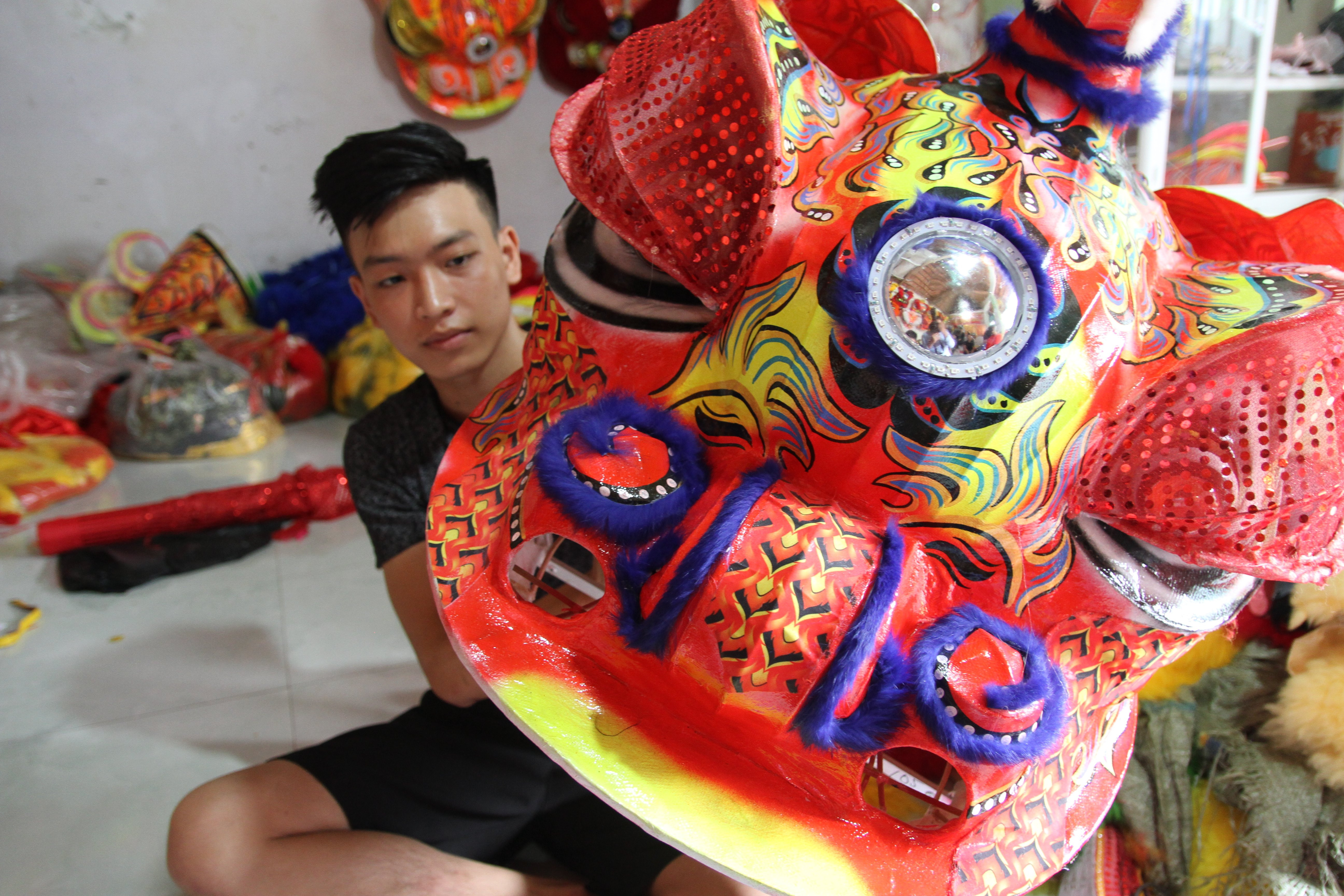 Càng sát Tết trung thu, cơ sở sản xuất đầu lân, sư của gia đình anh Bùi Viết Tưởng (Chương Mỹ, Hà Nội) càng tất bật, nhiều lúc không có thời gian để ngủ nhưng bù lại là một khoản thu nhập không nhỏ.