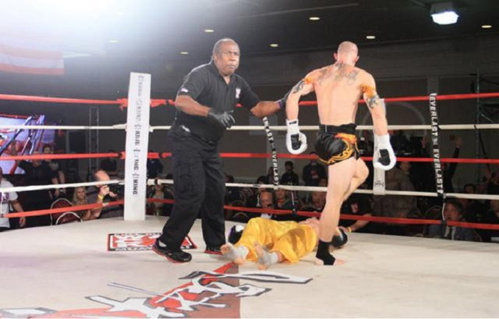Sau khi nhận một cú đá vào mạn sườn, võ sĩ của Trung Quốc bỗng nhiên đứng bất động như bị điểm huyệt. Josh Pickthall chớp thời cơ tung ra 6 cú đấm liên tiếp vào mặt, đánh gục Nhất Long.