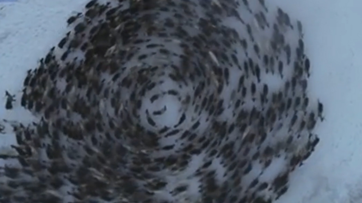Cảnh tượng hiếm của đàn tuần lộc được một nhiếp ảnh gia ghi lại, khi bị đe dọa, tuần lộc chạy theo vòng tròn tạo vòng xoáy, khiến kẻ thù khó tìm ra mục tiêu.