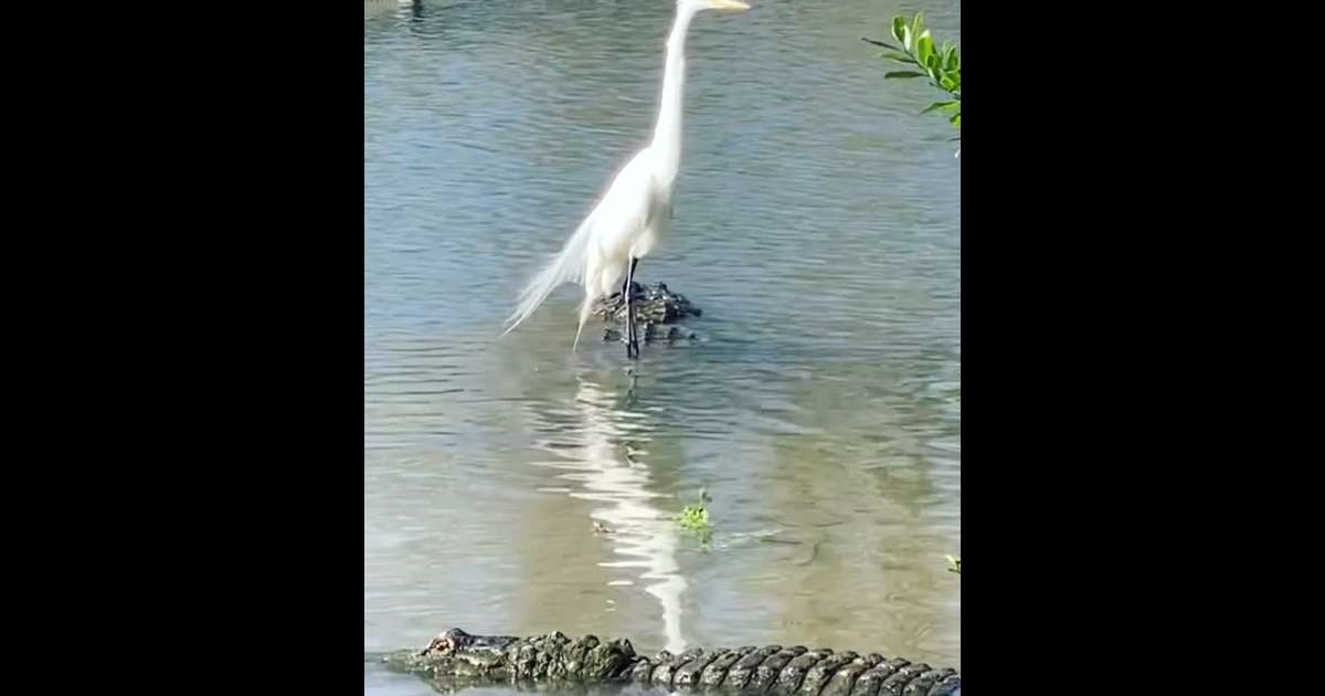 Đoạn video được lan truyền chóng mặt trên mạng xã hội ghi lại cảnh con diệc cưỡi trên lưng con cá sấu tại công viên cá sấu Gatorland, bang Florida, Mỹ.