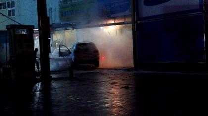 | Xăng đổ nhầm vào đang được rút ra thì bén lửa, cháy lan đến xe. |