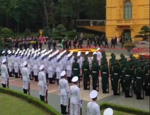 (VTC News) - Lễ đón Tổng thống Mỹ Barack Obama diễn ra sáng nay (23/5) tại Phủ Chủ tịch, mở đầu cho các hoạt động trong chuyến thăm của ông đến Việt Nam.