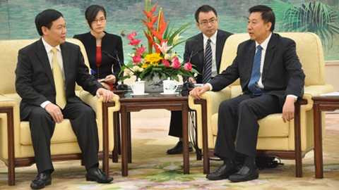 | Đồng chí Vương Đình Huệ hội kiến với Uỷ viên Quốc vụ Trung Quốc Vương Dũng |