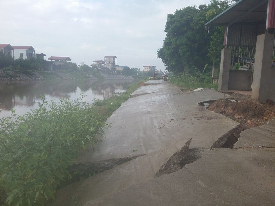 - đường bê tông dài 90 m đổ sụp xuống sông ở phú xuyên