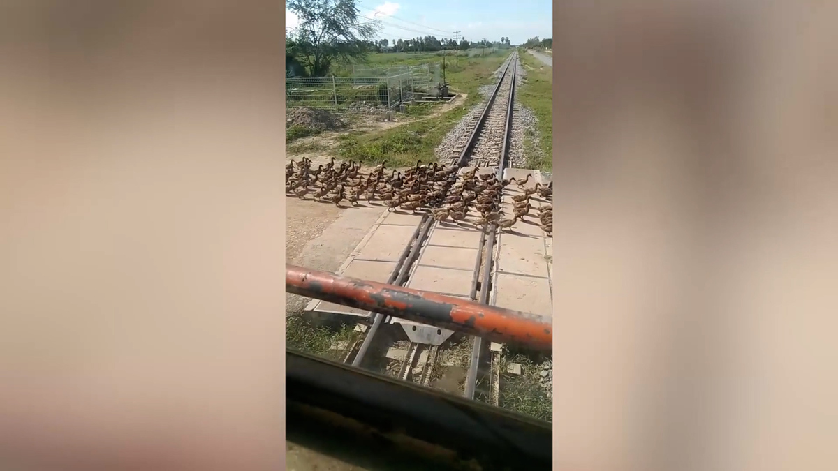 Vụ việc xảy ra tại tỉnh Phetchaburi, Thái Lan khi lái tàu dừng lại nhường đường cho hàng trăm con vịt băng qua để đến cánh đồng gần đó.