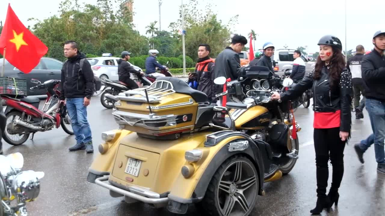 Rất nhiều chiếc xe motor 'siêu khủng' hòa cùng dòng người đi ra sân bay Nội Bài chào đón ĐT U23 Việt Nam trở về từ giải U23 châu Á.