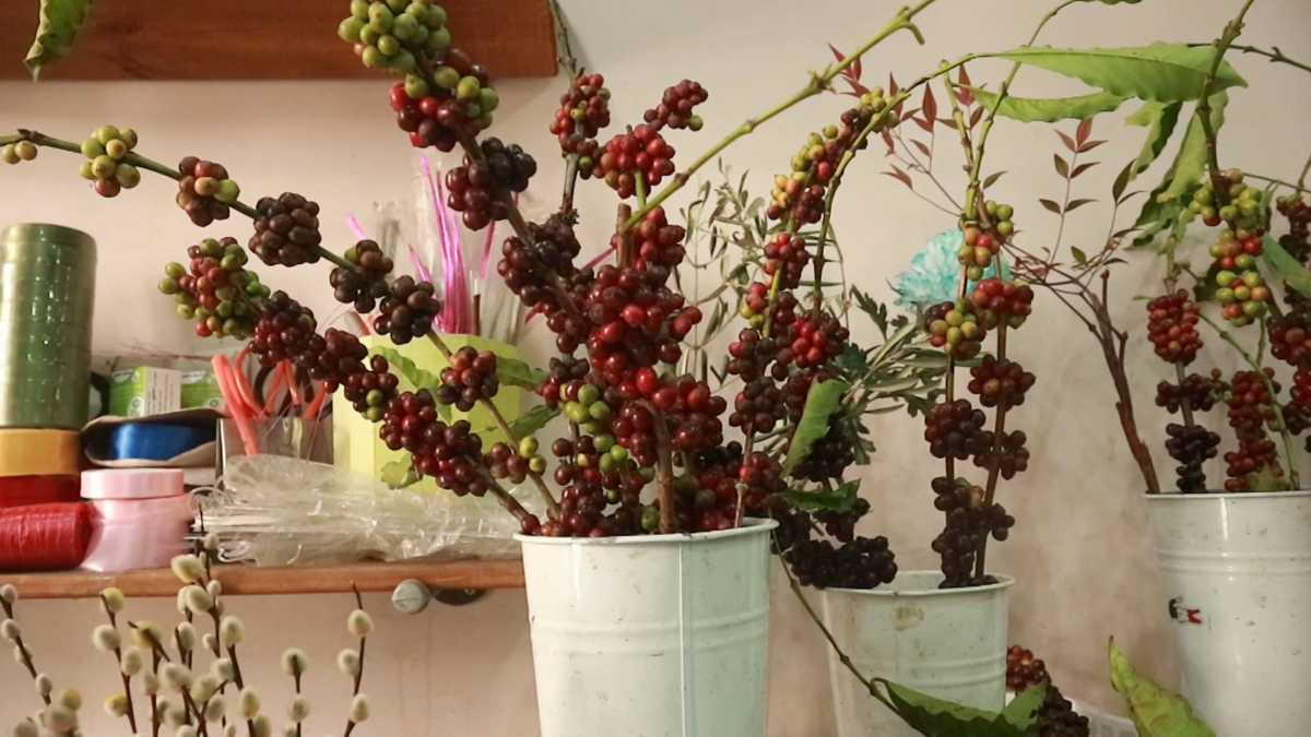 Video: Độc đáo dùng cành cà phê tươi trưng Tết ở TP.HCM