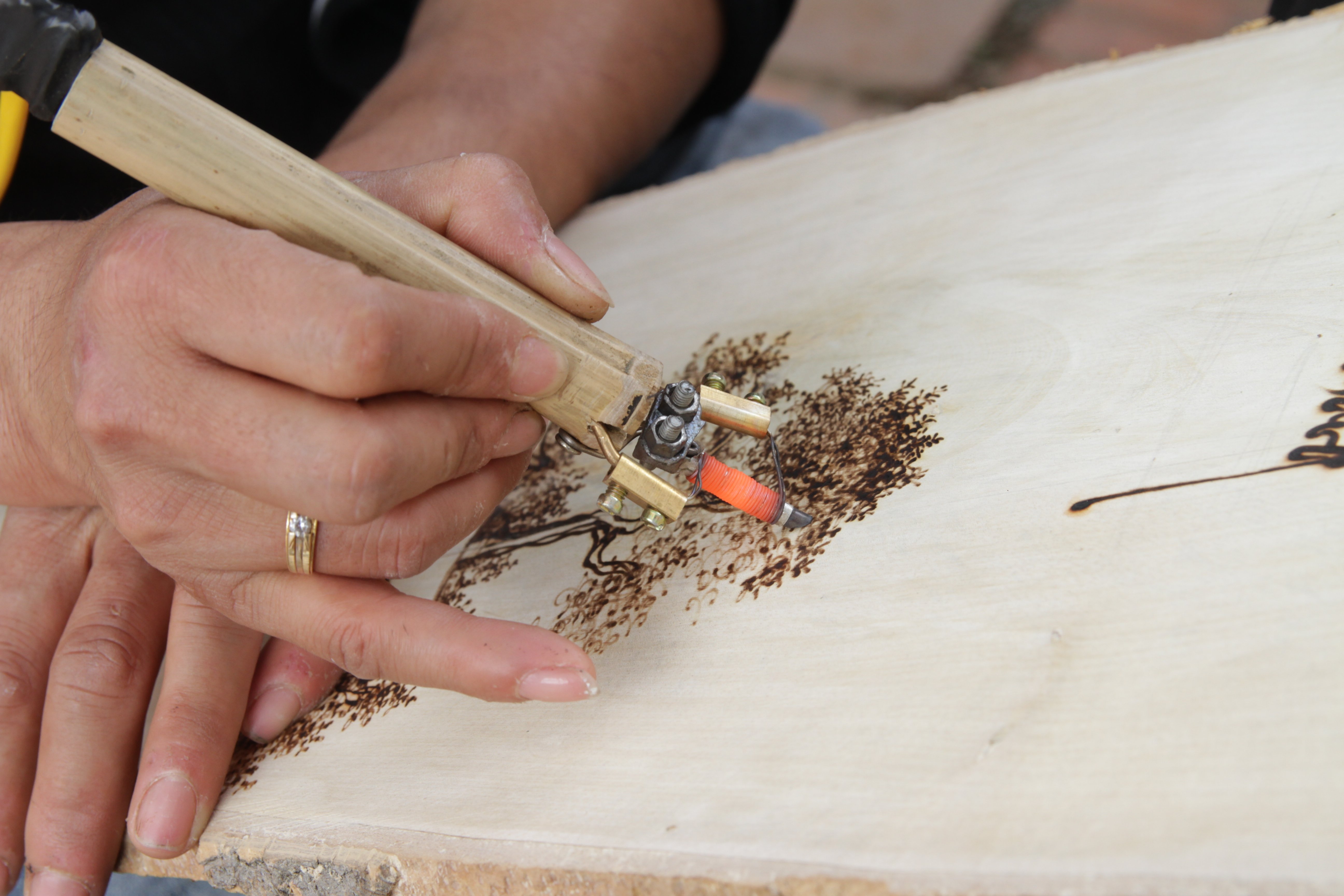 08/02/2019 06:29:00 +07:00Với một cây bút đặc biệt được đấu nối với một máy biến áp 12V, người nghệ sĩ đã tạo ra những bức tranh, thư pháp tuyệt đẹp trên những khúc gỗ tưởng như bỏ đi.