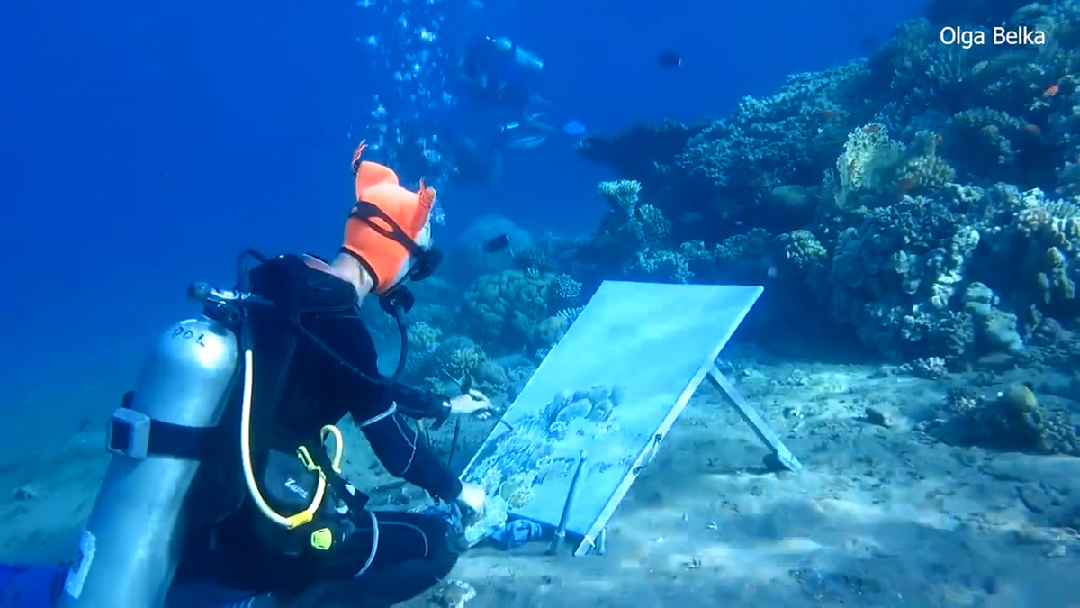 Với công nghệ đặc biệt, nữ hoạ sĩ Olga Belka (Nga) thường lặn xuống đáy biển để vẽ những bức tranh theo cách riêng của mình.