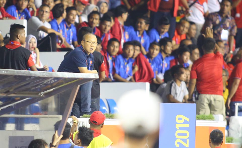 Sau khi bị truất quyền chỉ đạo, HLV Park Hang Seo bị yêu cầu rời khỏi khán đài, vào khu vực dành riêng cho người bị thẻ đỏ trong trận đấu. Ông cũng không được tham gia họp báo và phải để trợ lý Lee trả lời phỏng vấn truyền thông sau trận chung kết SEA Games 30. Trong clip, HLV Park Hang Seo cực kỳ tức giận khi bị người của ban tổ chức SEA Games ngăn cản ra sân mà không nói lý do.