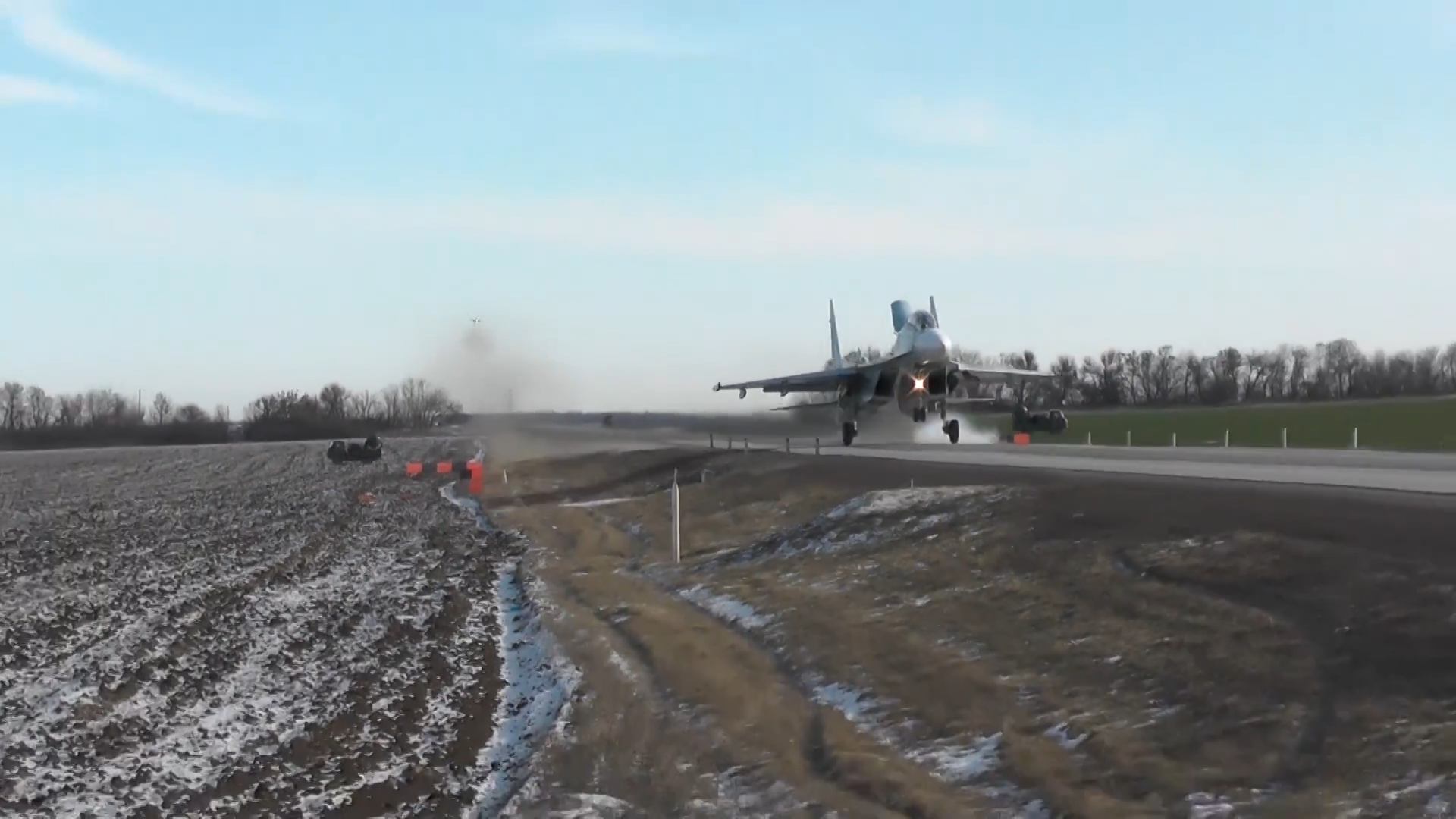 Ngày 17/1, 2 tiêm kích Su-30M2 và tiêm kích ném bom Su-34 thực hiện huấn luyện hạ cánh trên đường cao tốc tại khu vực gần thành phố Rostov.