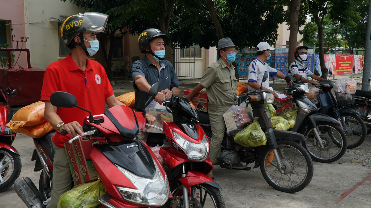 Đội giao hàng của phường 9 (Gò Vấp, TP.HCM) gồm tổ trưởng, bảo vệ dân phố, đoàn viên… họ nhận quà và trao tận tay cho gia đình chính sách, hộ nghèo.